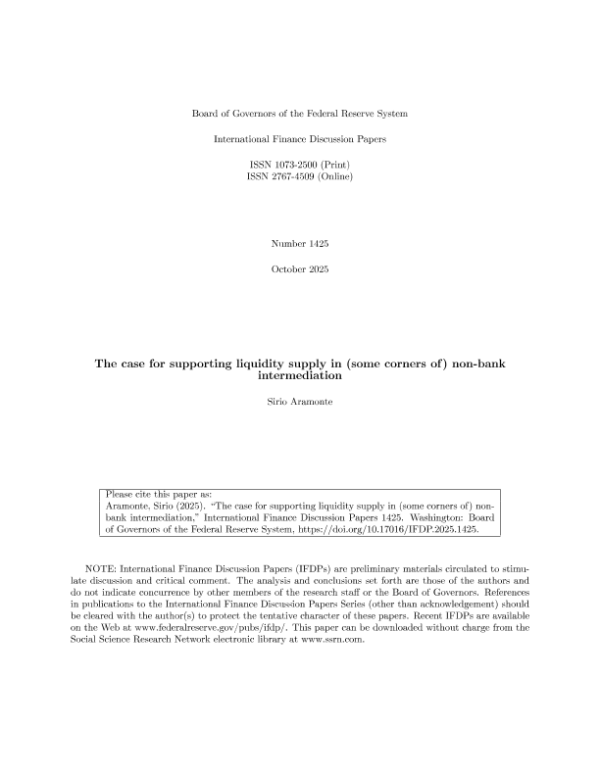 【Federal Reserve Board】【202510】The case for supporting liquidity supply in (some corners of) non-bank intermediation-41页 学术论文
