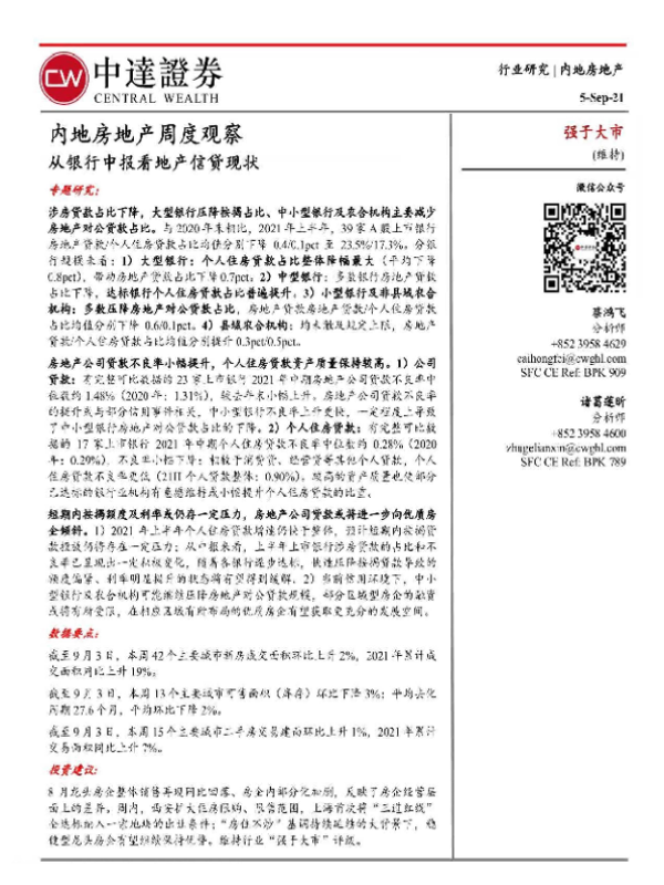 【中达证券】【20210905】内地房地产周度观察:从银行中报看地产信贷现状-16页 行业研究