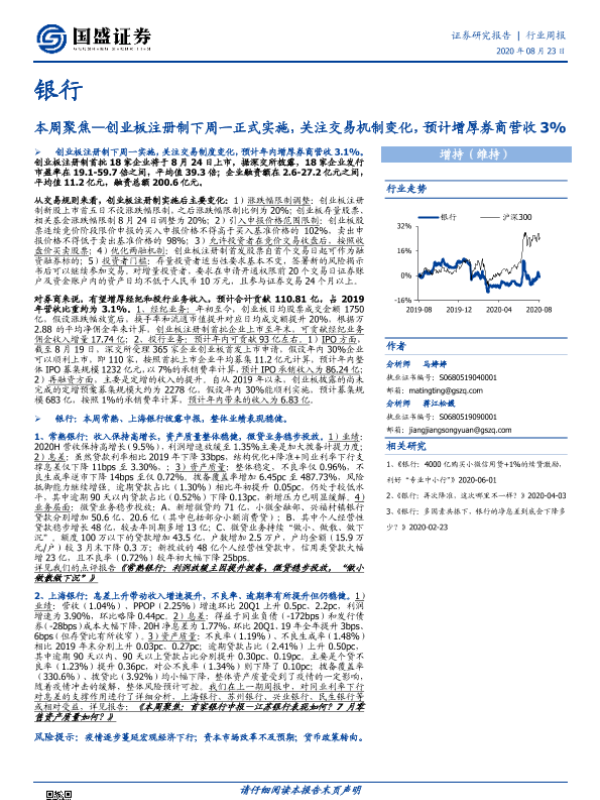 【国盛证券】【20200823】银行本周聚焦:创业板注册制下周一正式实施,关注交易机制变化-15页 行业研究