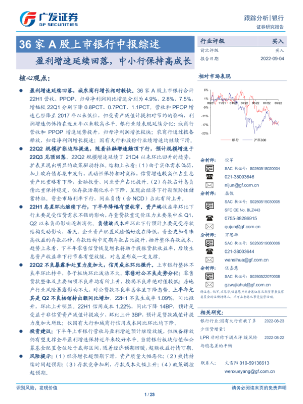 【广发证券】【20220904】36家A股上市银行中报综述:盈利增速延续回落,中小行保持高成长-23页 行业研究