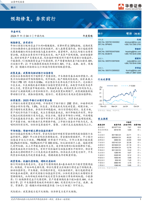 【华泰证券】【20241104】银行年度策略:预期修复,夯实前行-34页 行业研究