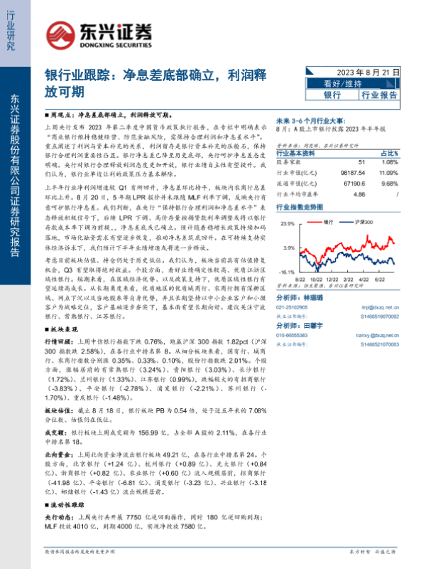 【东兴证券】【20230821】银行业跟踪:净息差底部确立,利润释放可期-11页 行业研究