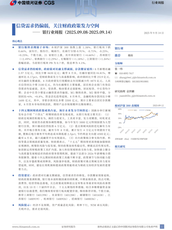 【银河证券】【202509】信贷需求仍偏弱,关注财政政策发力空间—— 银行业周报(2025.09.08-2025.09.14)-19页 证券期货研究报告