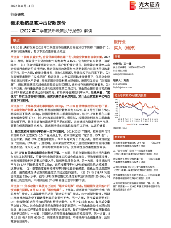 【光大证券】【20220811】2022年二季度货币政策执行报告解读-需求收缩显著冲击贷款定价-7页 行业研究