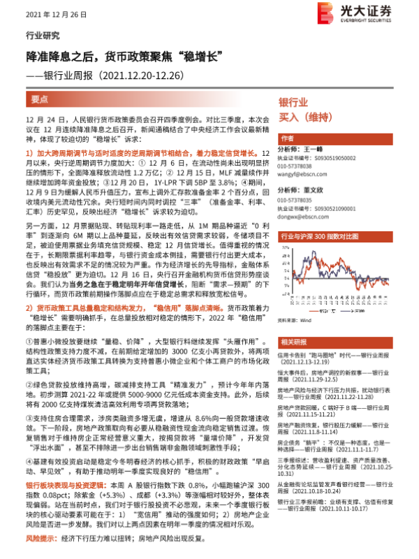 【光大证券】【20211226】降准降息之后,货币政策聚焦“稳增长”-10页 行业研究