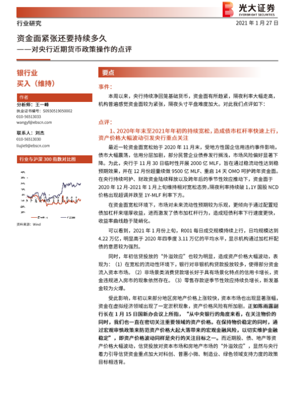 【光大证券】【20210127】对央行近期货币政策操作的点评-资金面紧张还要持续多久-6页 行业研究