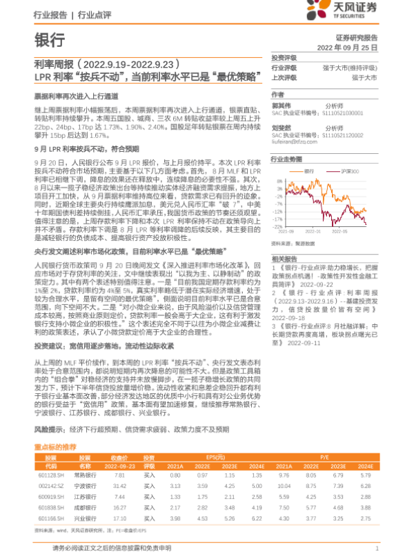 【天风证券】【20220925】银行利率周报:LPR利率“按兵不动”,当前利率水平已是“最优策略”-13页 行业研究