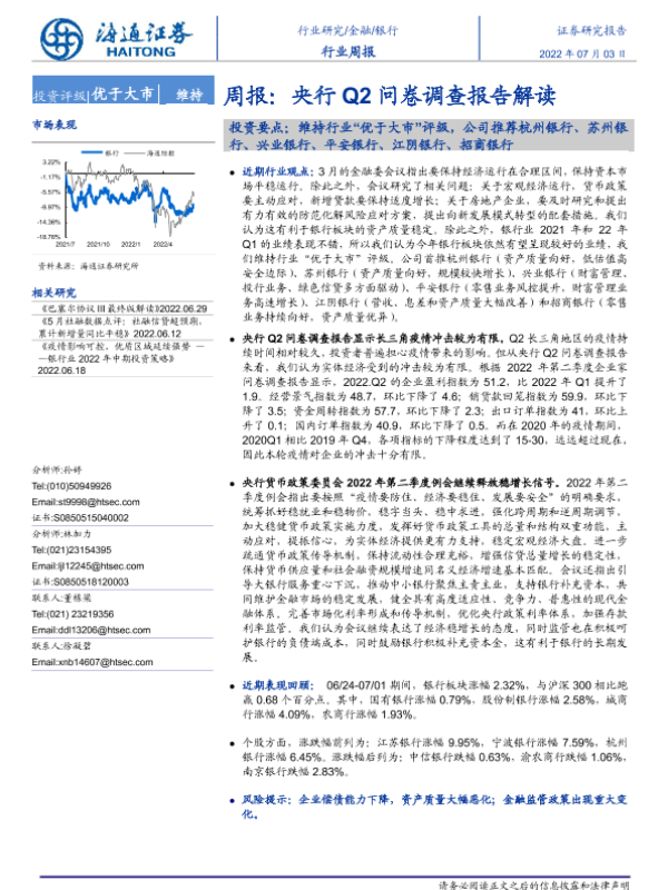 【海通证券】【20220703】银行周报:央行Q2问卷调查报告解读-8页 行业研究