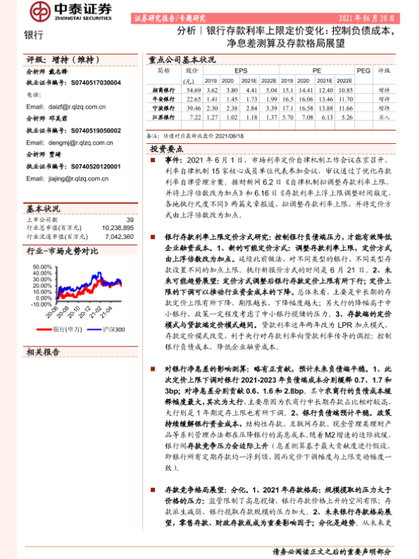 【中泰证券】【20210620】银行存款利率上限定价变化:控制负债成本,净息差测算及存款格局展望-18页 行业研究