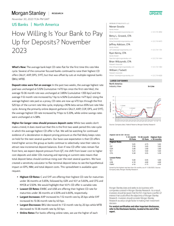 【Morgan Stanley】【202311】US Banks How Willing Is Your Bank to Pay Up for Deposits-18页 行业研究