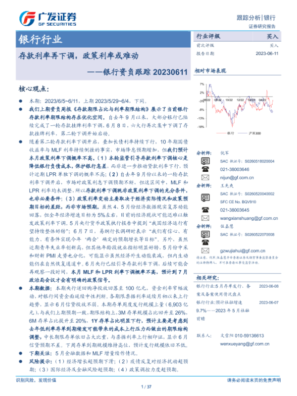 【广发证券】【20230611】银行资负跟踪:存款利率再下调,政策利率或难动-37页 行业研究