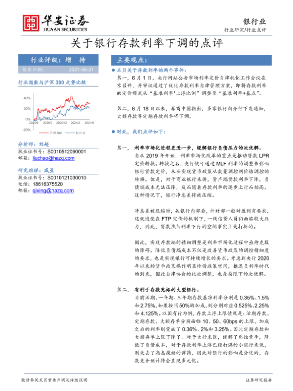 【华安证券】【20210621】关于银行存款利率下调的点评-6页 行业研究