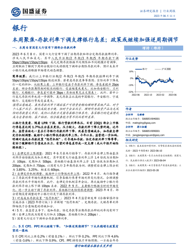 【国盛证券】【20230611】本周聚焦-存款利率下调支撑银行息差;政策或继续加强逆周期调节-13页 行业研究
