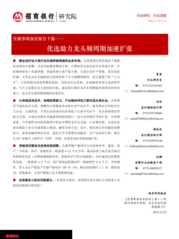 【招商银行】【20200317】生猪养殖深度报告下篇——优选助力龙头顺周期加速扩张-31页 行业研究