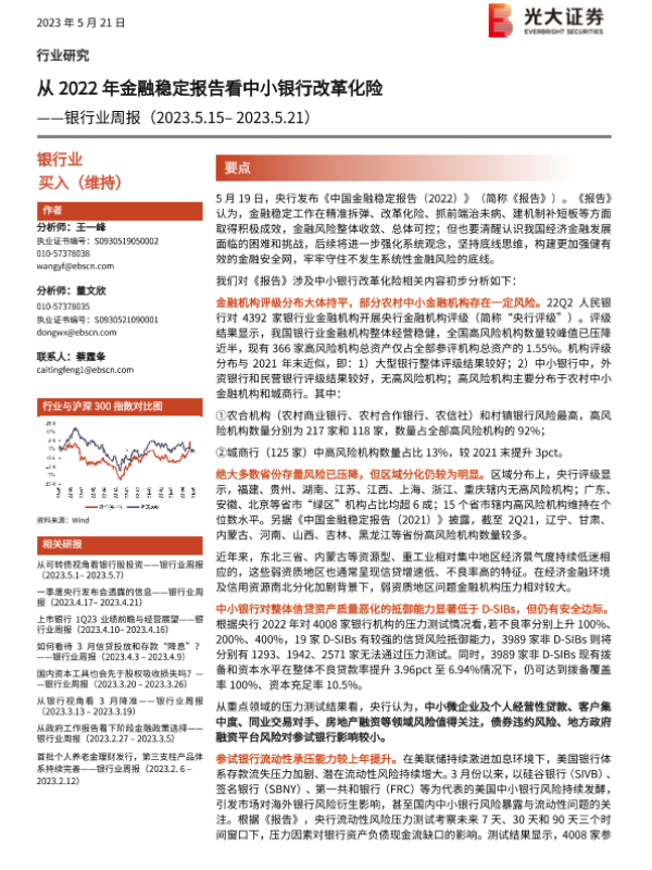 【光大证券】【20230521】从2022年金融稳定报告看中小银行改革化险-12页 行业研究