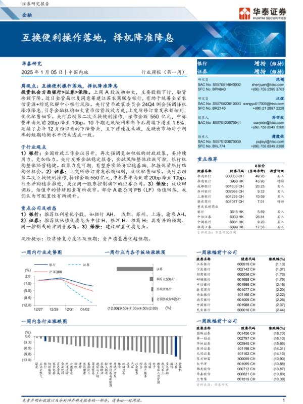 【华泰证券】【20250105】金融行业周报(第一周):互换便利操作落地,择机降准降息-28页 行业研究