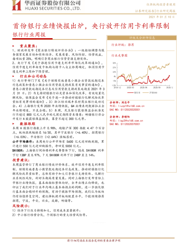 【华西证券】【20210110】银行行业周报:首份银行业绩快报出炉,央行放开信用卡利率限制-10页 行业研究