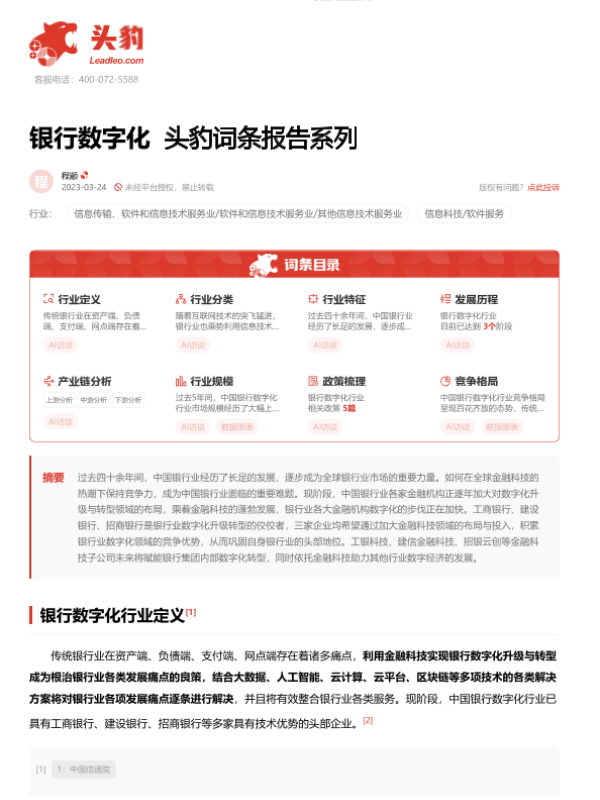 【头豹研究院】【20230324】银行数字化 头豹词条报告系列-16页 行业研究