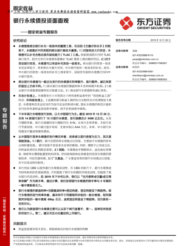 【东方证券】【20191226】固定收益专题报告:银行永续债投资面面观-14页 证券期货研究报告