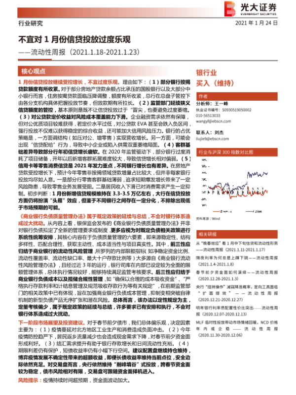 【光大证券】【20210124】银行业流动性周报:不宜对1月份信贷投放过度乐观-9页 行业研究