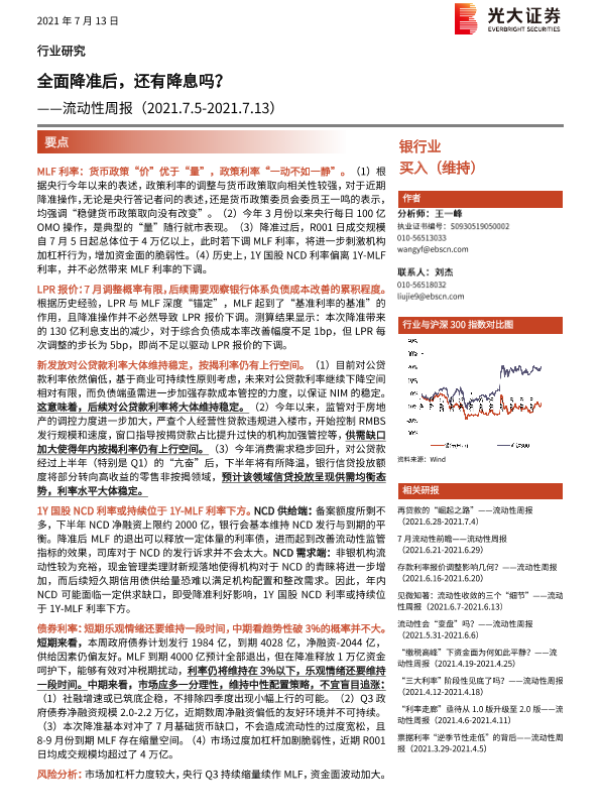 【光大证券】【20210713】全面降准后,还有降息吗?-14页 行业研究
