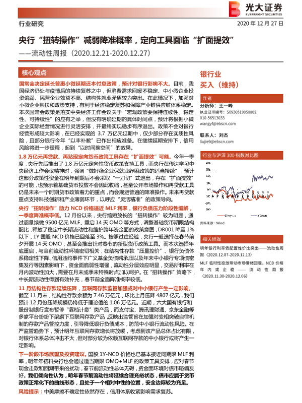 【光大证券】【20201227】银行业流动性周报:央行“扭转操作”减弱降准概率,定向工具面临“扩面提效”-7页 行业研究