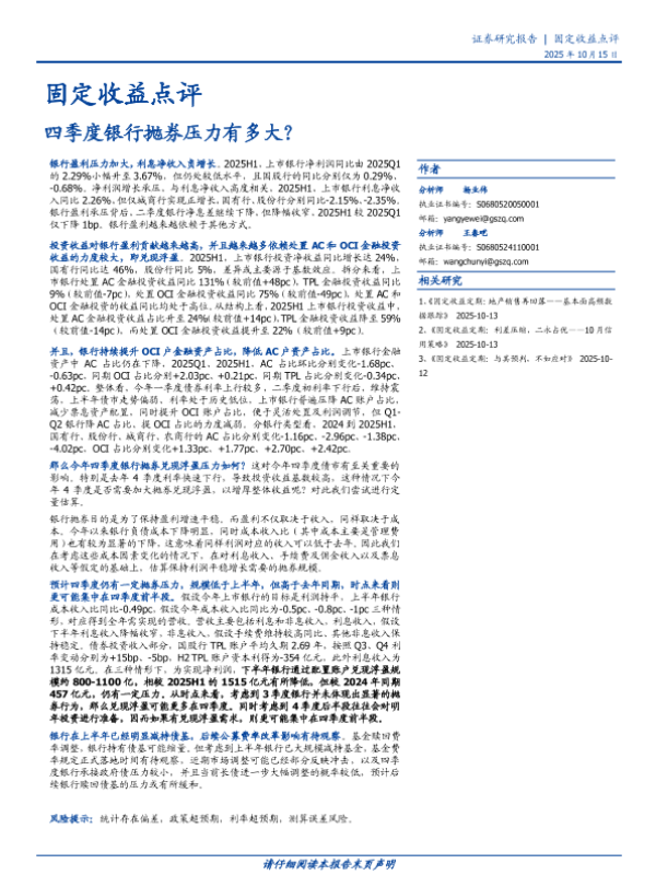 【国盛证券】【202510】固定收益点评:四季度银行抛券压力有多大?-16页 证券期货研究报告