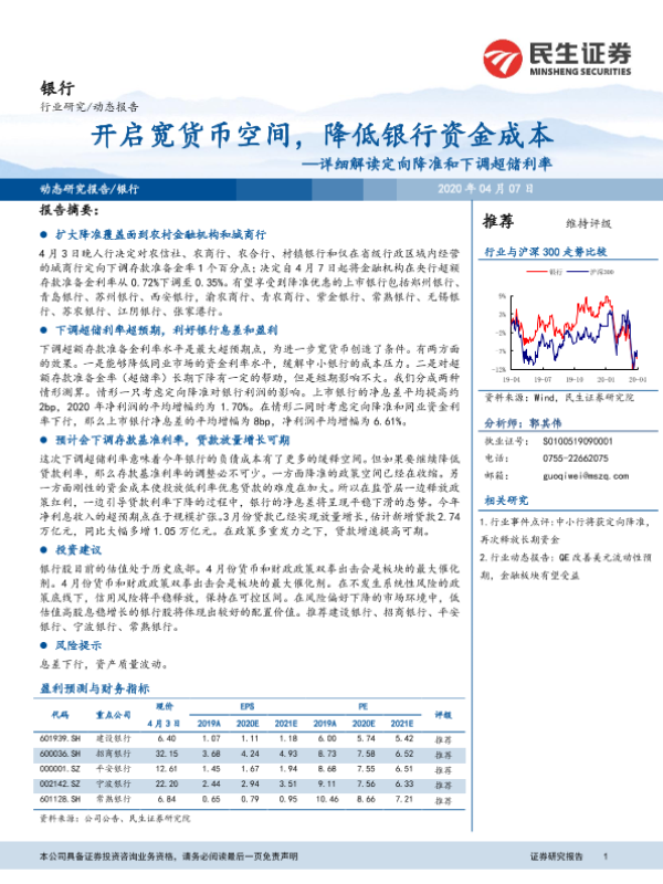 【民生证券】【20200407】开启宽货币空间,降低银行资金成本——详细解读定向降准和下调超储利率-13页 行业研究