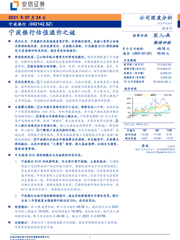 【安信证券】【20210724】宁波银行估值溢价之谜-53页 行业研究
