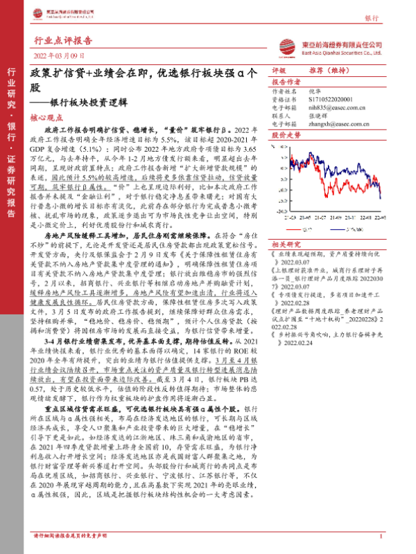 【东亚前海证券】【20220309】银行板块投资逻辑:政策扩信贷+业绩会在即,优选银行板块强α个股-6页 行业研究