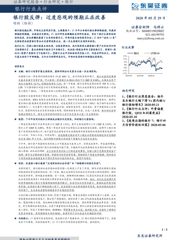 【东吴证券】【20200529】银行行业点评:银行股反弹:过度悲观的预期正在改善-3页 行业研究