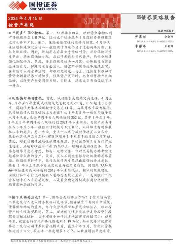 【国投证券】【20240415】债券策略报告:抢资产再现-17页 行业研究