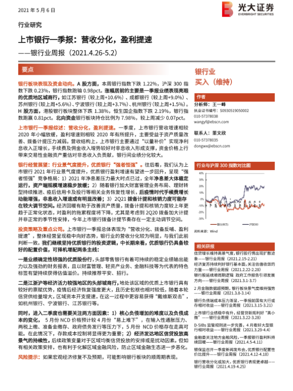 【光大证券】【20210506】上市银行一季报:营收分化,盈利提速-17页 行业研究