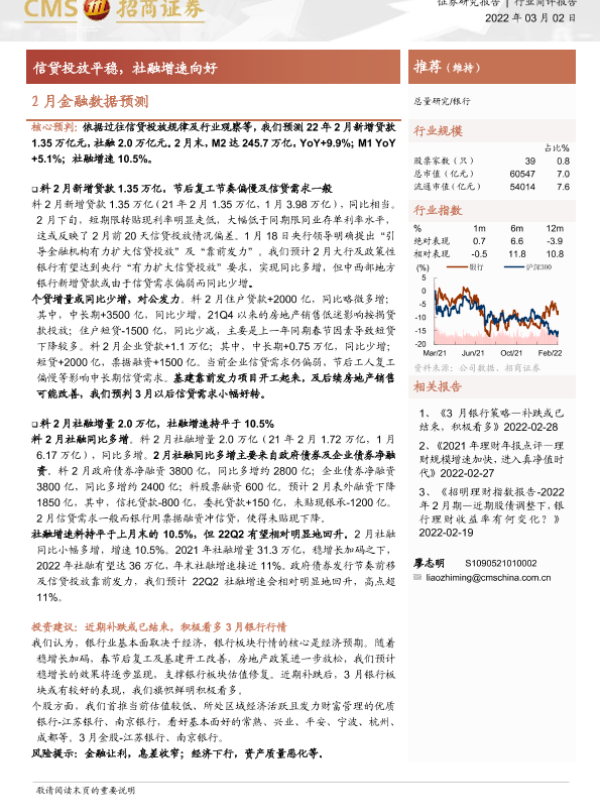 【海通证券】【20220302】银行2月金融数据预测:信贷投放平稳,社融增速向好-4页 证券期货研究报告