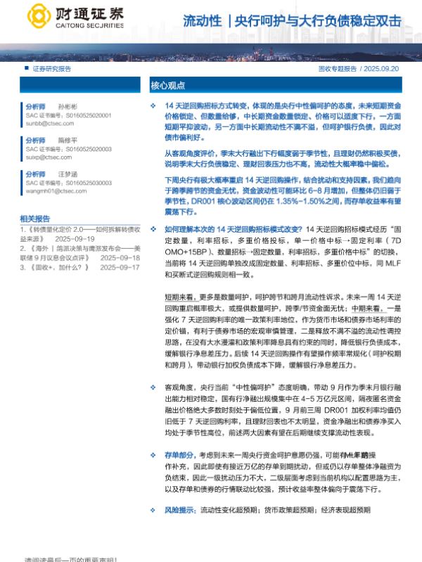 【财通证券】【202509】流动性|央行呵护与大行负债稳定双击-26页 证券期货研究报告
