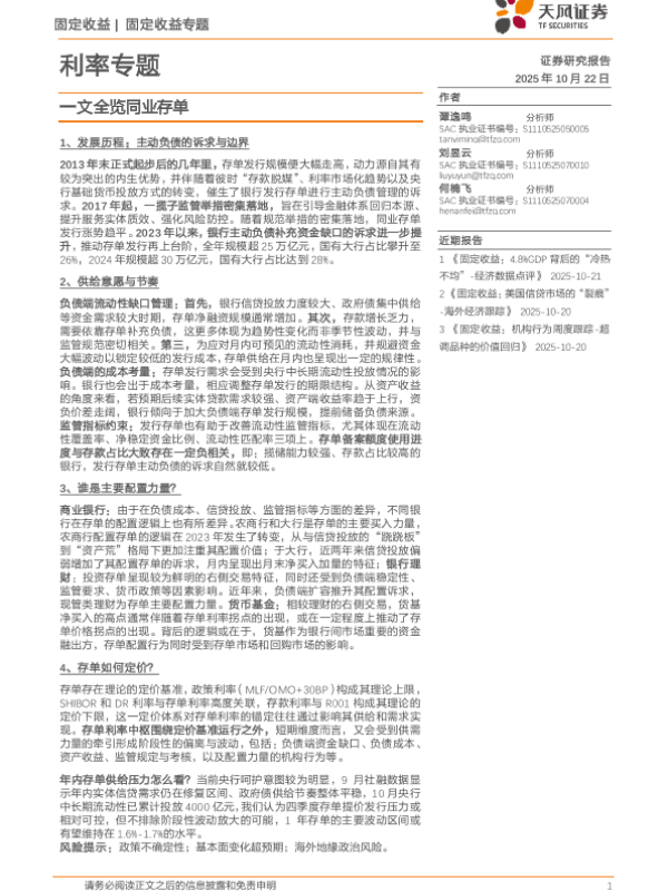 【天风证券】【202510】利率专题:一文全览同业存单-28页 证券期货研究报告