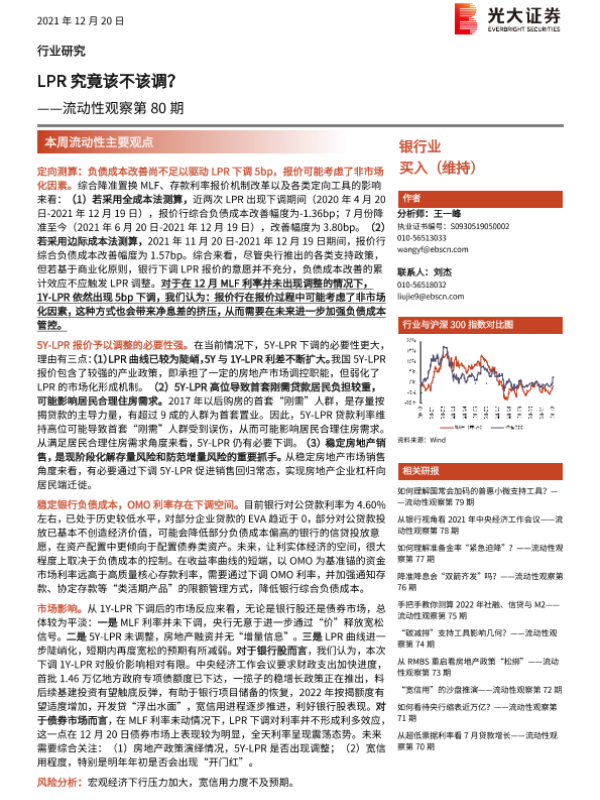 【光大证券】【20211220】银行业流动性观察第80期:LPR究竟该不该调?-8页 行业研究
