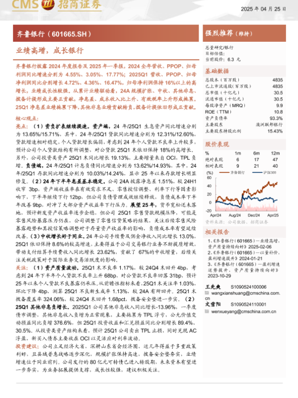 【海通证券】【20250425】齐鲁银行(601665)业绩高增,成长银行-19页 公司研究