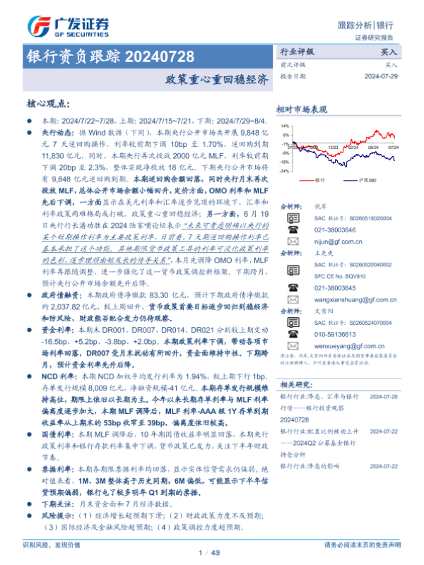 【广发证券】【20240729】银行资负跟踪:政策重心重回稳经济-43页 行业研究