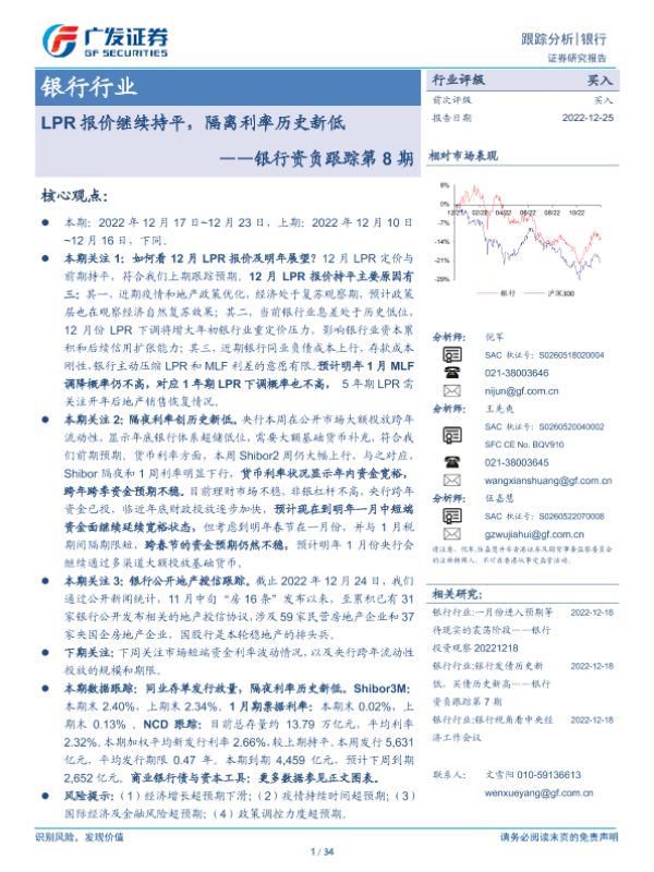 【广发证券】【20221225】银行资负跟踪第8期:LPR报价继续持平,隔离利率历史新低-34页 行业研究