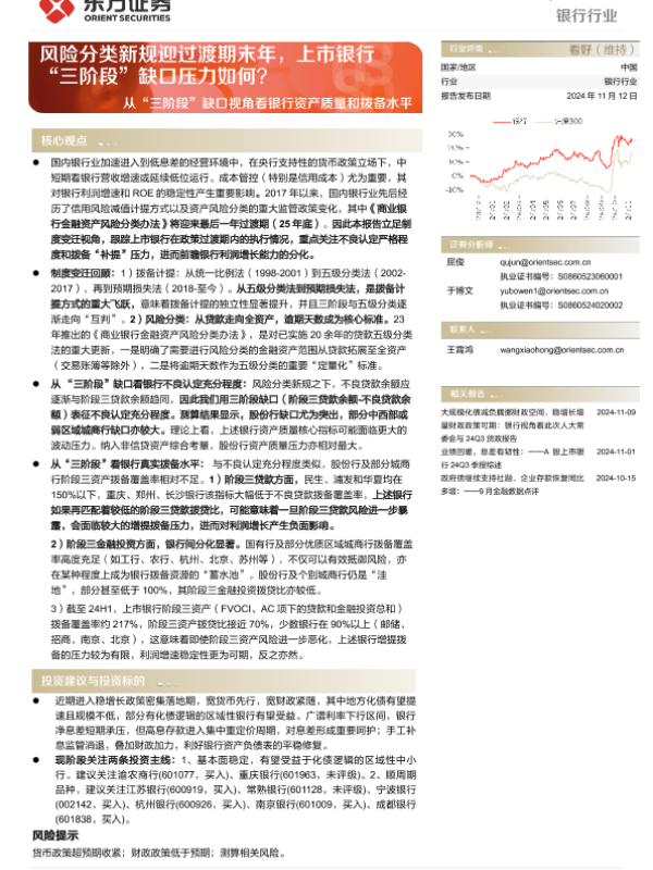 【东方证券】【20241112】从‘三阶段’缺口视角看银行资产质量和拨备水平:风险分类新规迎过渡期末年,上市银行‘三阶段’缺口压力如何?-12页 行业研究