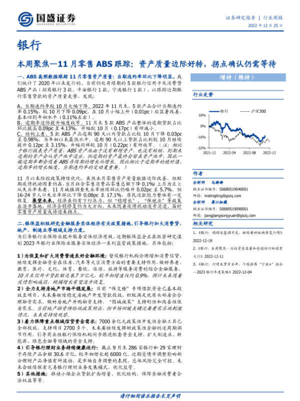 【国盛证券】【20221225】11月零售ABS跟踪:资产质量边际好转,拐点确认仍需等待-12页 行业研究