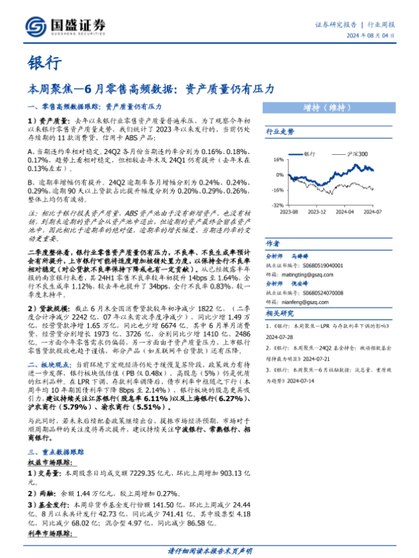 【国盛证券】【20240804】6月零售高频数据:资产质量仍有压力-11页 行业研究