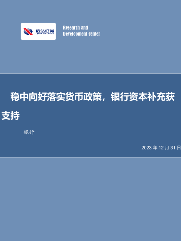 【信达证券】【20231231】稳中向好落实货币政策,银行资本补充获支持-14页 行业研究