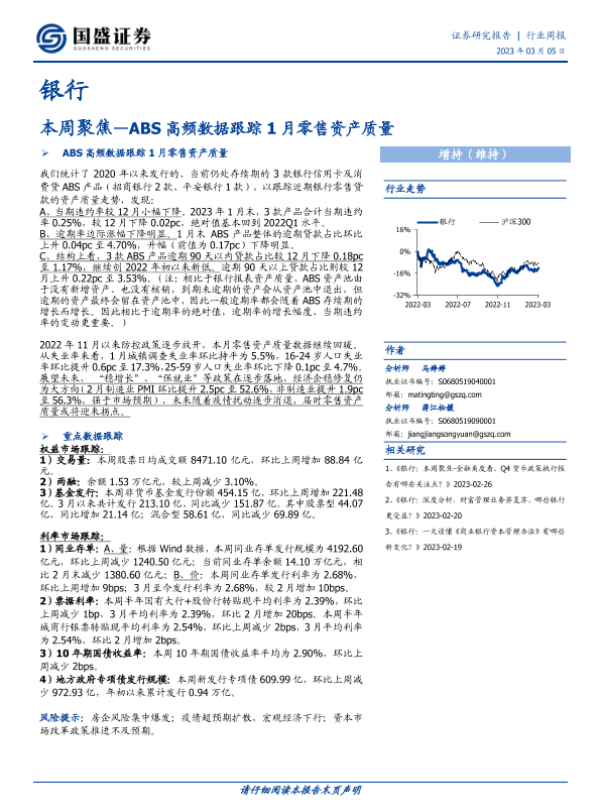 【国盛证券】【20230305】银行本周聚焦:ABS高频数据跟踪1月零售资产质量-12页 行业研究