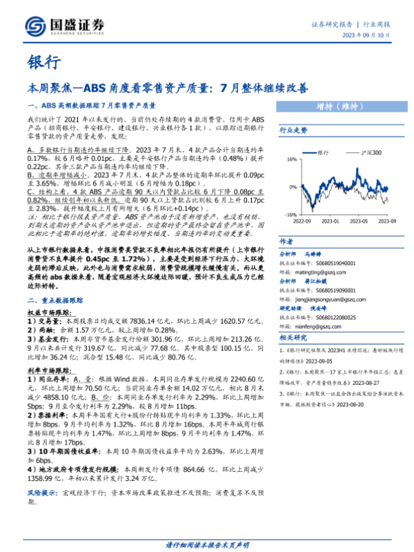【国盛证券】【20230910】银行本周聚焦:ABS角度看零售资产质量-11页 行业研究