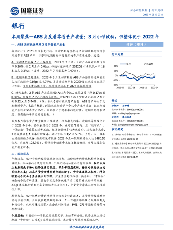 【国盛证券】【20230507】银行行业周报:本周聚焦-ABS角度看零售资产质量-12页 行业研究