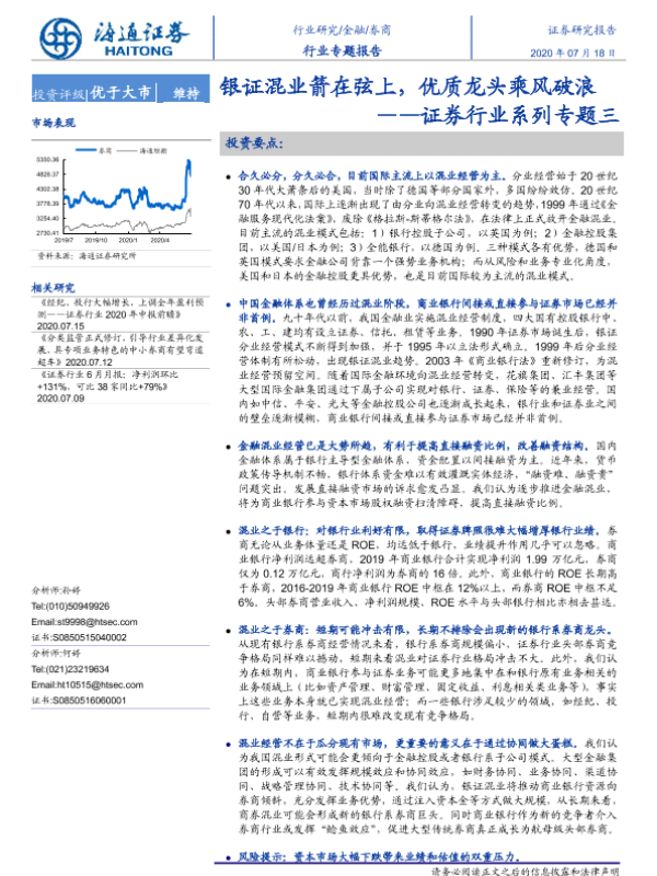 【海通证券】【20200718】银证混业箭在弦上,优质龙头乘风破浪-29页 行业研究