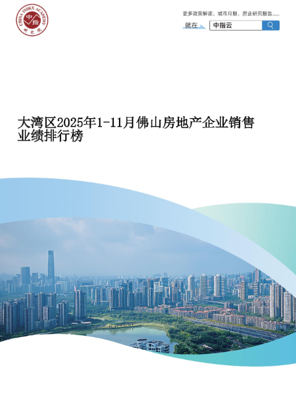 【中指数据 CREIS】【2025】大湾区2025年1-11月佛山房地产企业销售业绩排行榜-10页 市场调研