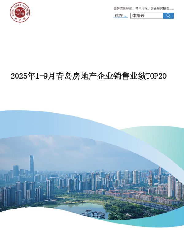 【中指数据 CREIS】【2025】2025年1-9月青岛房地产企业销售业绩TOP20-8页 市场调研